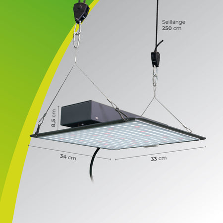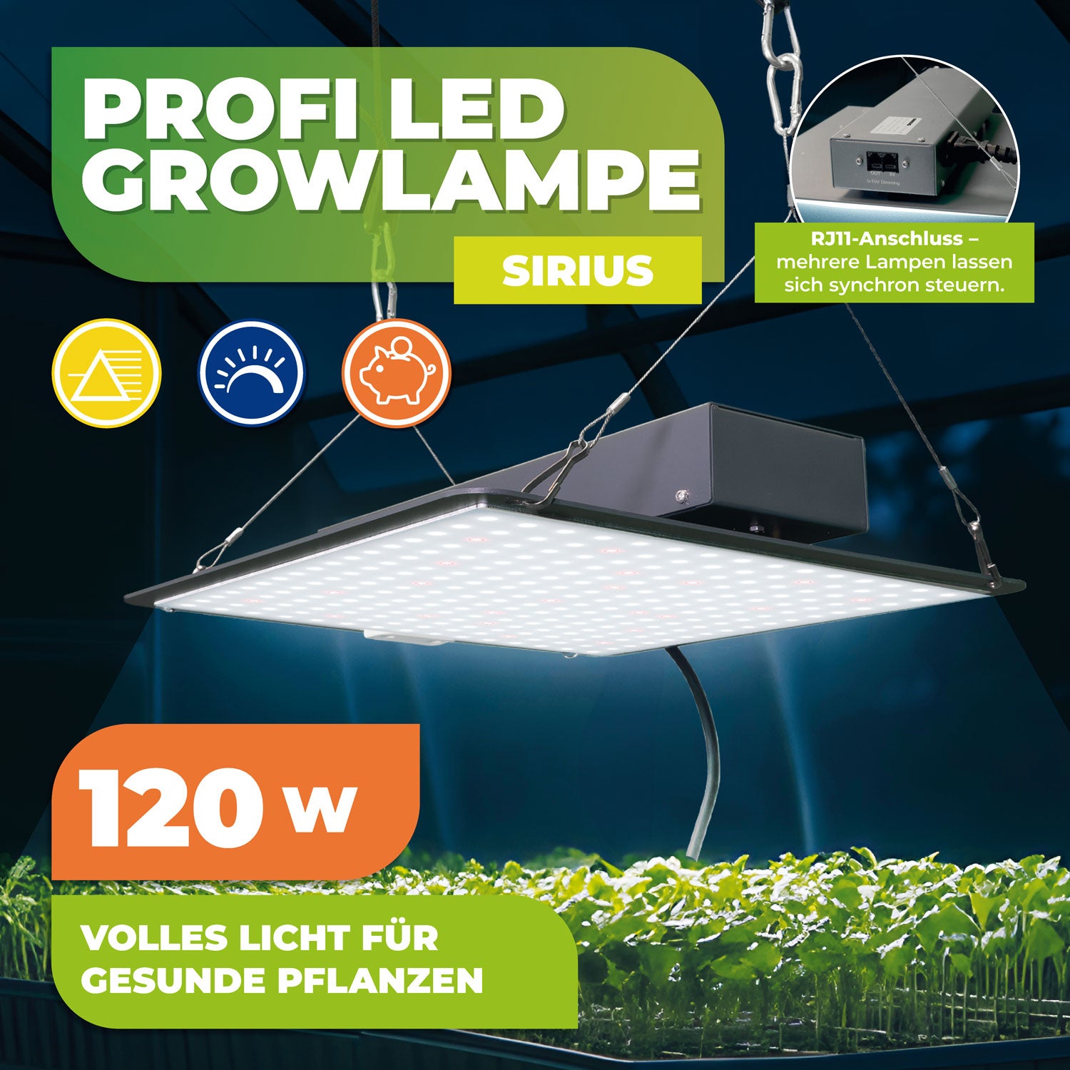Mit einer Leistung von 120 Watt bietet die SIRIUS kraftvolle Ausleuchtung bei geringem Energieverbrauch. Das robuste Metallgehäuse ist für den dauerhaften Einsatz konzipiert und gewährleistet Langlebigkeit auch unter anspruchsvollen Bedingungen. Dank ihrer kompakten Maße von 340 × 330 × 85 mm eignet sich die Lampe ideal für kleinere Gewächshäuser, Indoor-Gardening oder Anzuchtstationen.