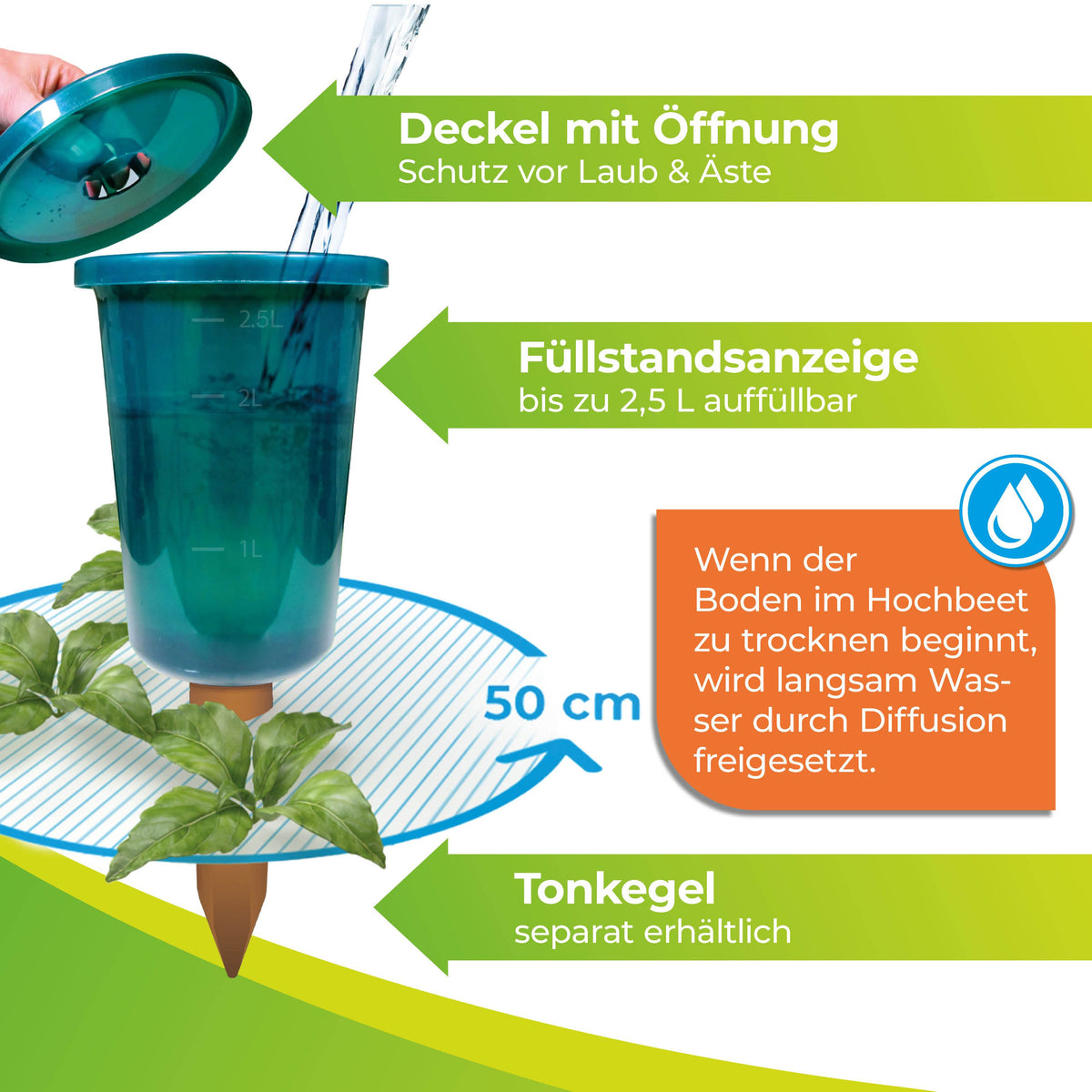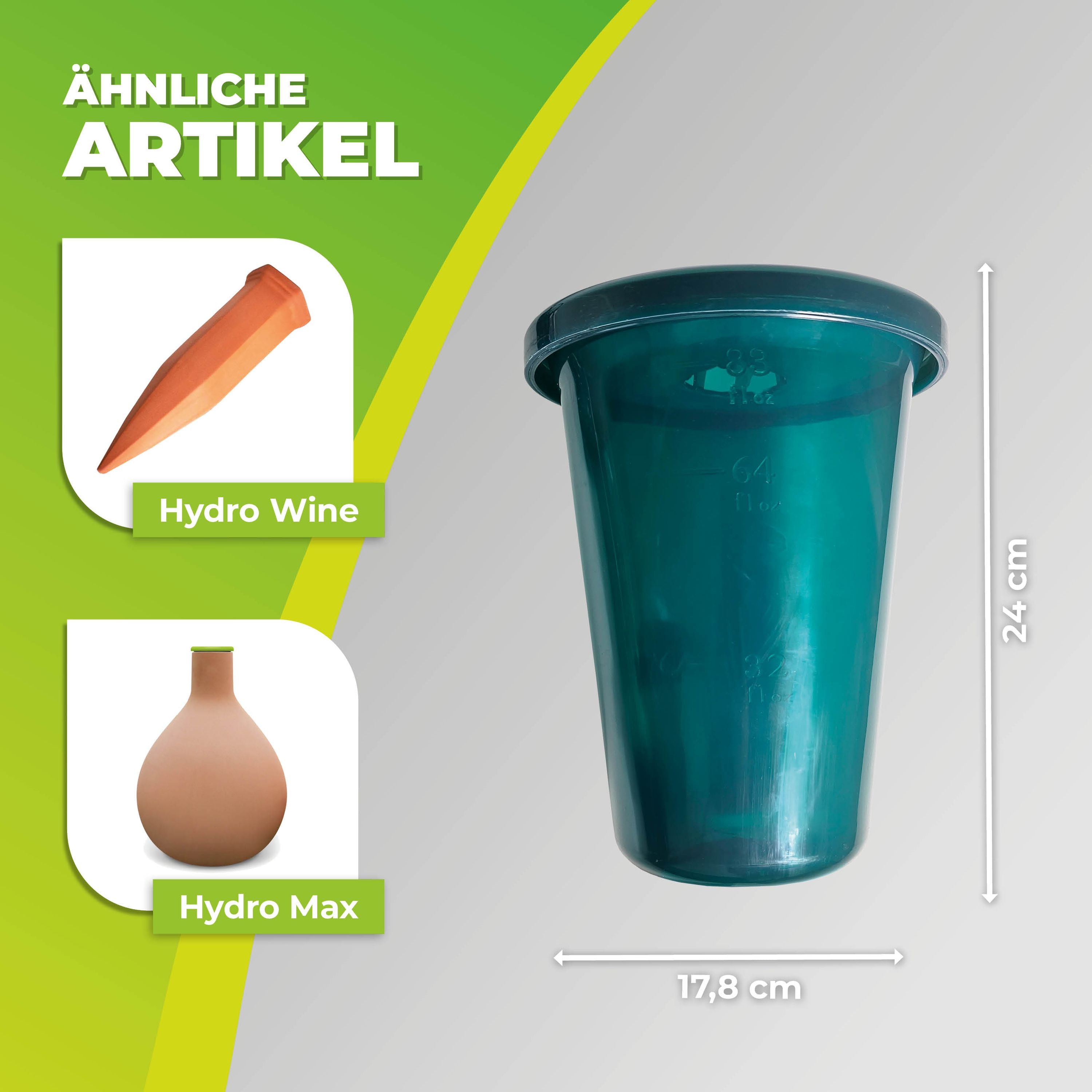 Der Hydro Cup Becheraufsatz mit Füllstandsanzeige, ist eine tolle Erweiterung für das Hydro Cup Bewässerungssystem. Mit dem Becher können bis zu 2.5 Liter Regenwasser gesammelt werden. Der Deckel verhindert, dass herabfallendes Laub oder Äste in den Becher gelangen können.
