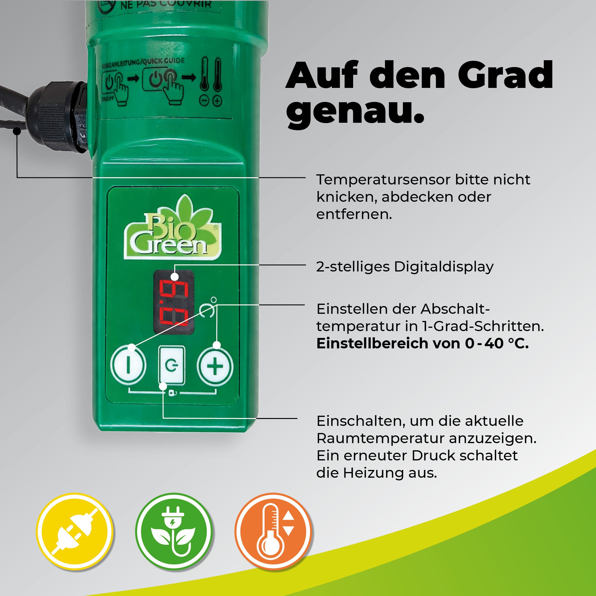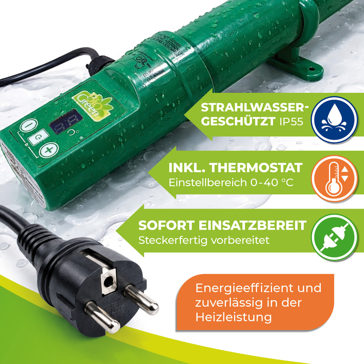 | Produkttyp | Elektro-Gewächshausheizung inkl. Digitalthermostat |