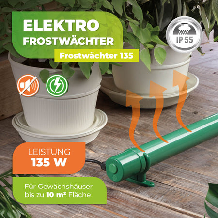 Effiziente 135 Watt Heizleistung: Bietet optimalen Frostschutz für Ihre Pflanzen in kleinen Gewächshäusern, Frühbeeten oder Kellerräumen.