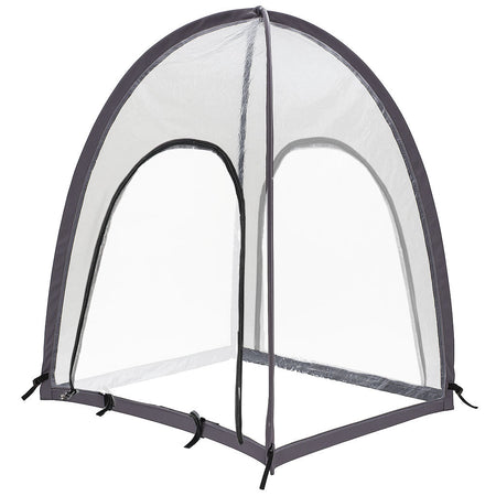 Vorder- und Rückseite sind jeweils mit einer großzügigen Öffnung ausgestattet, die das Arbeiten am Beet deutlich erleichtern. Ob Säen, Pikieren oder späteres Ernten — alle Arbeiten sind bequem möglich.