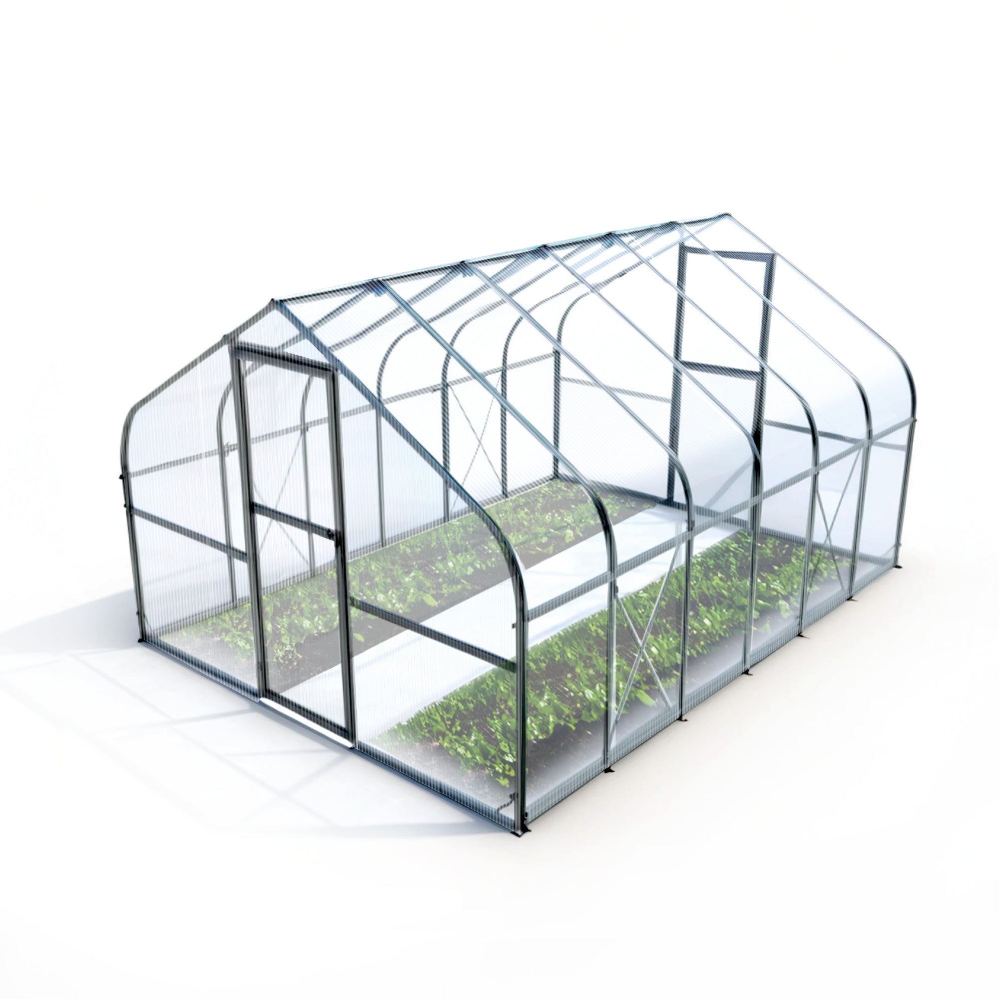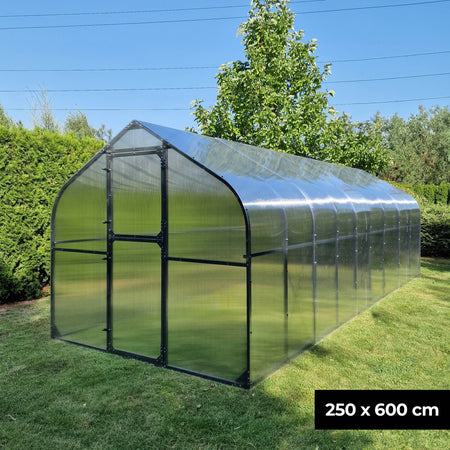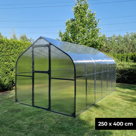 Das robuste Rahmengestell aus Stahl gewährleistet eine hohe Stabilität, während die leichten Kunststoffscheiben aus Polycarbonat für eine optimale Lichtdurchlässigkeit sorgen. Die Kunststoffscheiben sind zudem UV-beständig. Sie werden also nicht porös. So haben Sie lange Freude an Ihrem Gewächshaus.