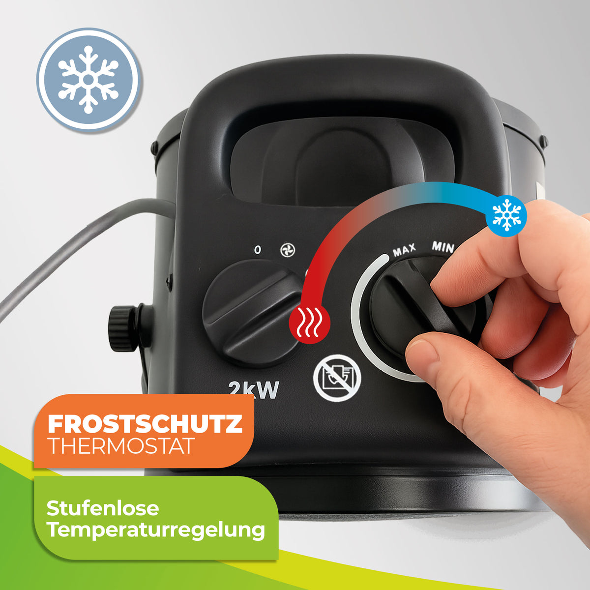 - Einstellbare Temperatur: Stufenloser Thermostat und Cold-Air-Funktion für flexiblen Einsatz.