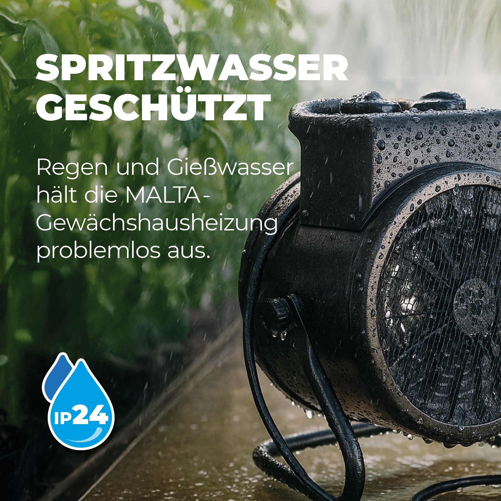 Mit nur 2,7 kg Gewicht ist die Malta 2.0 leicht zu platzieren. Sie ist IP24-zertifiziert (spritzwassergeschützt), GS- und CE-geprüft und bietet ein optimales Verhältnis aus Leistung, Sicherheit und Energieeffizienz.