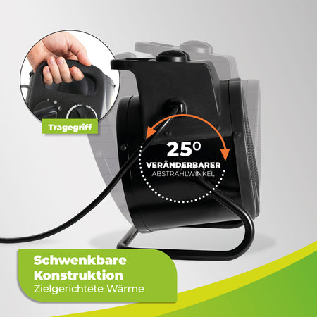Der Temperaturregler lässt sich stufenlos einstellen und reagiert sensibel auf Umgebungstemperaturen – perfekt für die Bedürfnisse empfindlicher Pflanzen. Die integrierte Kaltluftstufe, das verstellbare Ausblasgitter, der selbst rückstellende Thermostat sowie das großzügige Luftauslassrohr (Ø 175 mm) machen die Handhabung besonders komfortabel.
