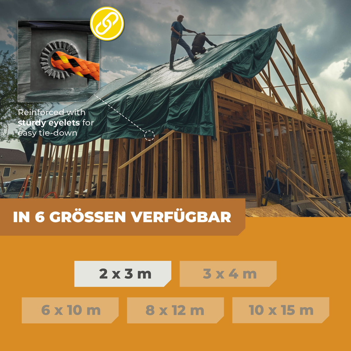 Die Plane ist zu 100 % UV-beständig, wasserdicht und frostbeständig, was bedeutet, dass Ihre Gegenstände sicher vor Sonne, Regen und Schnee geschützt sind. Dank ihrer Verrottungsfreiheit und Wiederverwertbarkeit ist sie auch eine umweltfreundliche Option. Mit den alle 50 cm platzierten, ultraschallgeschweißten Ösen ist eine einfache und sichere Befestigung garantiert. Diese hochwertige Abdeckplane ist eine Investition, die sich auszahlt, da sie bis zu 7-mal länger haltbar ist als herkömmliche Planen.