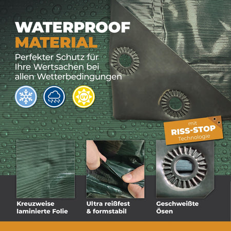UV-beständig – 100 % UV-Schutz bewahrt Ihre Abdeckungen vor Sonnenschäden und verlängert die Lebensdauer der Plane erheblich.
