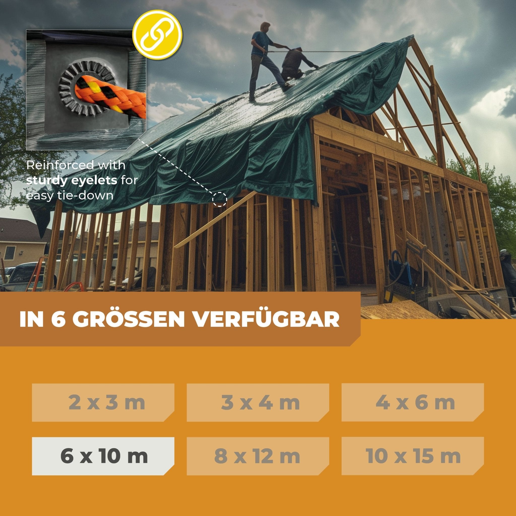 Diese sorgfältig hergestellte Abdeckplane ist nicht nur zu 100 % wasserdicht, sondern auch universell einsetzbar und dank ihres geringen Gewichts äußerst handlich. Die alle 50 cm ultraschallgeschweißten, reißfesten Ösen entlang des Planenrands sorgen für eine einfache und sichere Befestigung.