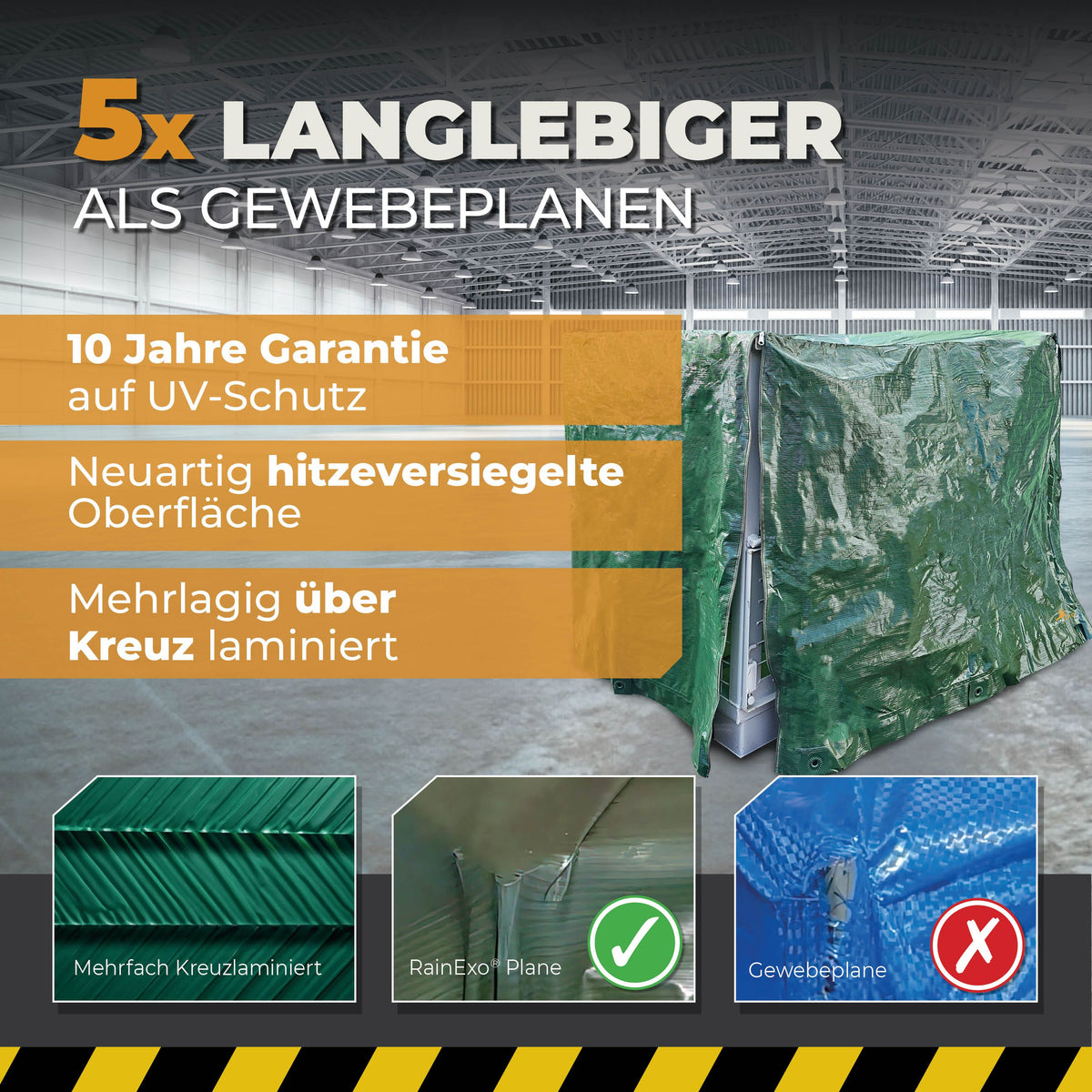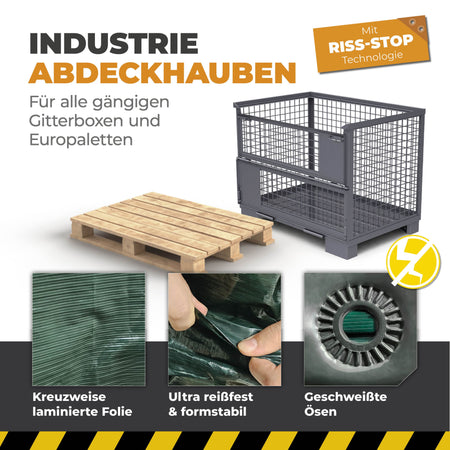Schützen Sie Ihre Gitterboxen das ganze Jahr über vor Regen, Schnee, Sonne und anderen Witterungseinflüssen mit der Rainexo Gitterbox-Abdeckhaube mit Reißverschluss und sorgen Sie für eine längere Lebensdauer Ihrer Lager- und Transportbehälter.