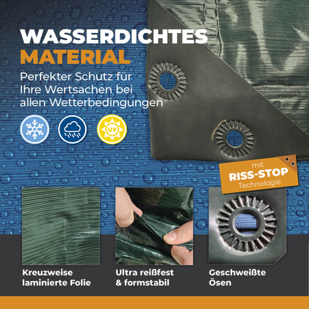 Diese hochwertige Abdeckplane überzeugt durch ihre außergewöhnliche Reißfestigkeit und Langlebigkeit – ideal für den täglichen Einsatz im Außenbereich. Dank der innovativen 3-fach Kreuz-Laminierung bleibt die Plane selbst bei starker Beanspruchung stabil und zuverlässig.