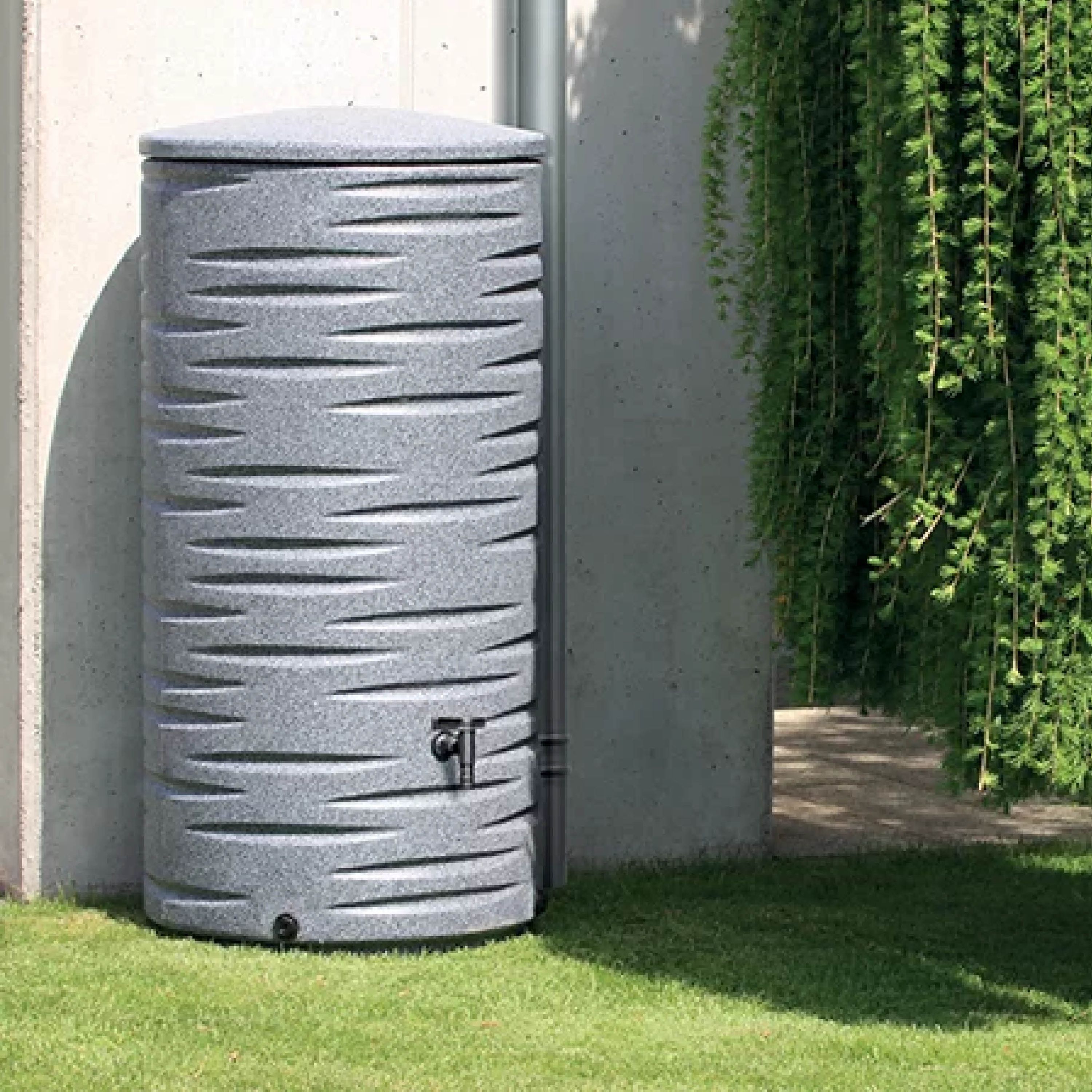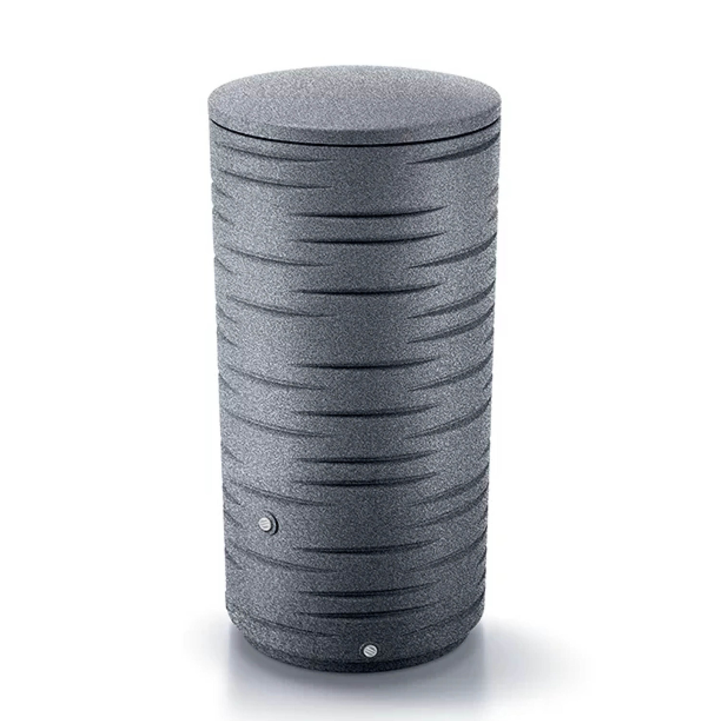 Der Regenwassertank Freze verbindet schlankes, modernes Design mit hoher Funktionalität. Er eignet sich ideal als praktisches Wasserspeicherelement für jeden Garten. Dank seines windfesten Deckels und der Möglichkeit zur Verkettung lassen sich mehrere Tanks flexibel kombinieren, um Regenwasser effizient zu sammeln. Die elegante Form und das ästhetische Rillenmuster machen den Tank zudem zu einem stilvollen Blickfang in Ihrem modernen Garten.