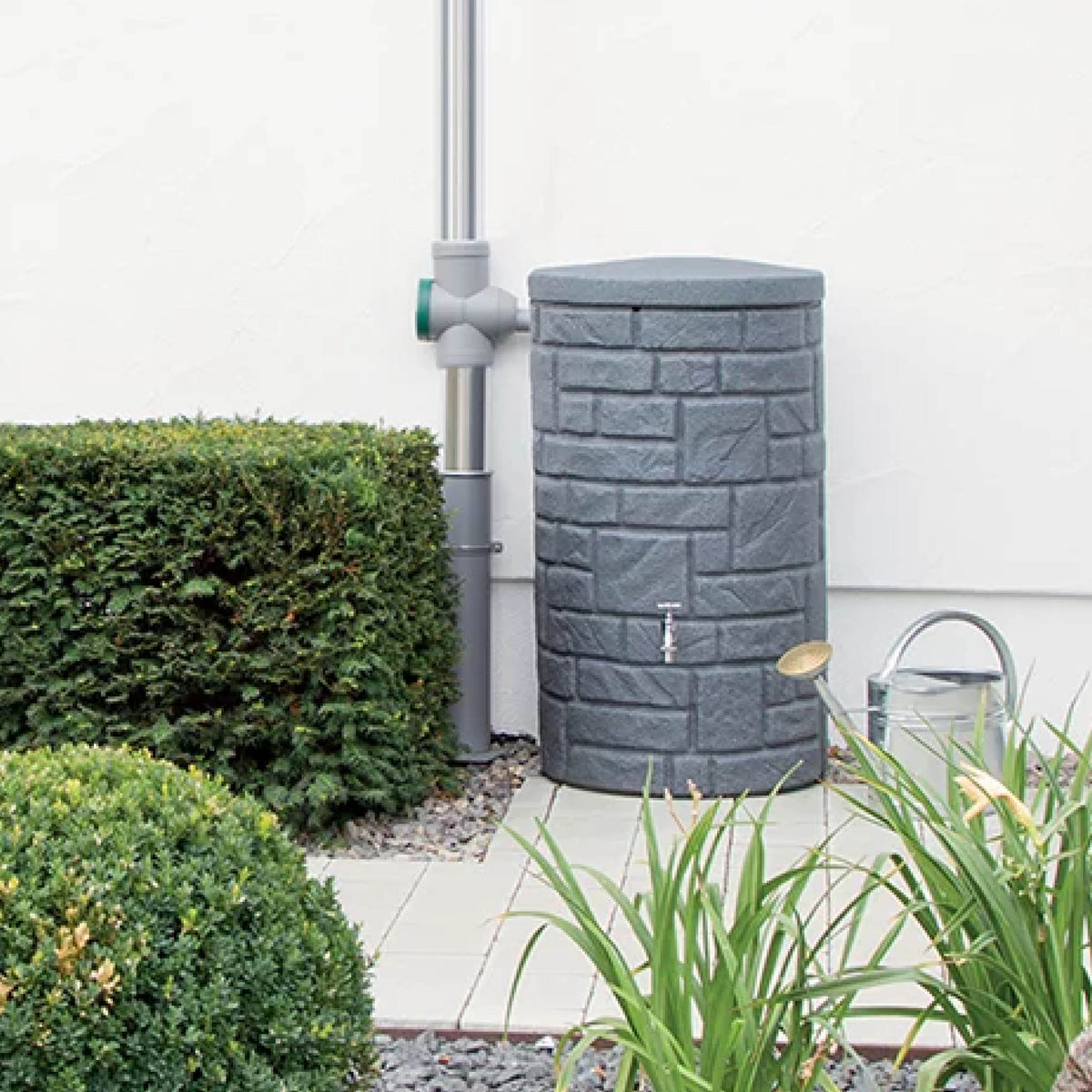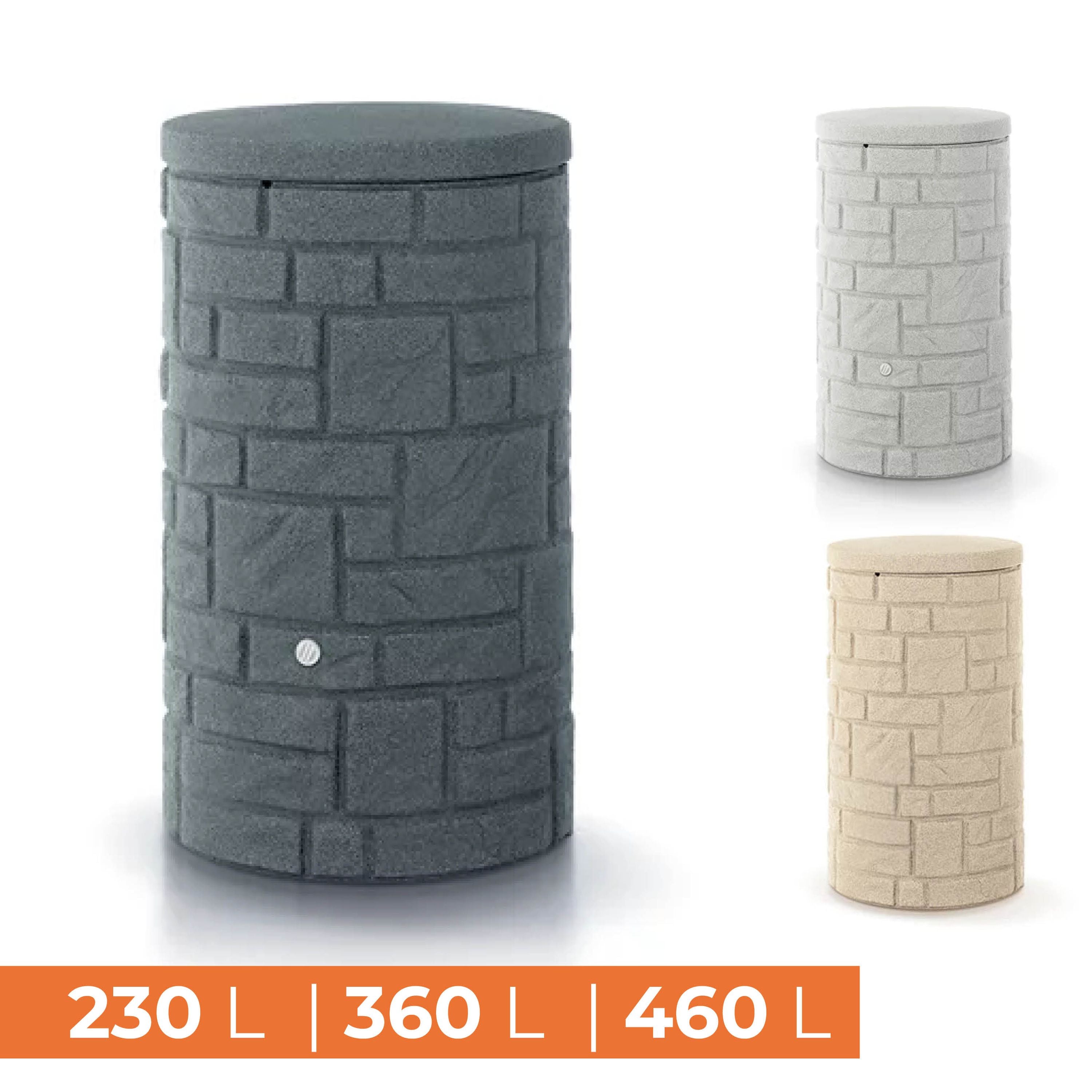Regentonne ARCADO, vers. Größen & Farben, runde Mauersteinoptik
